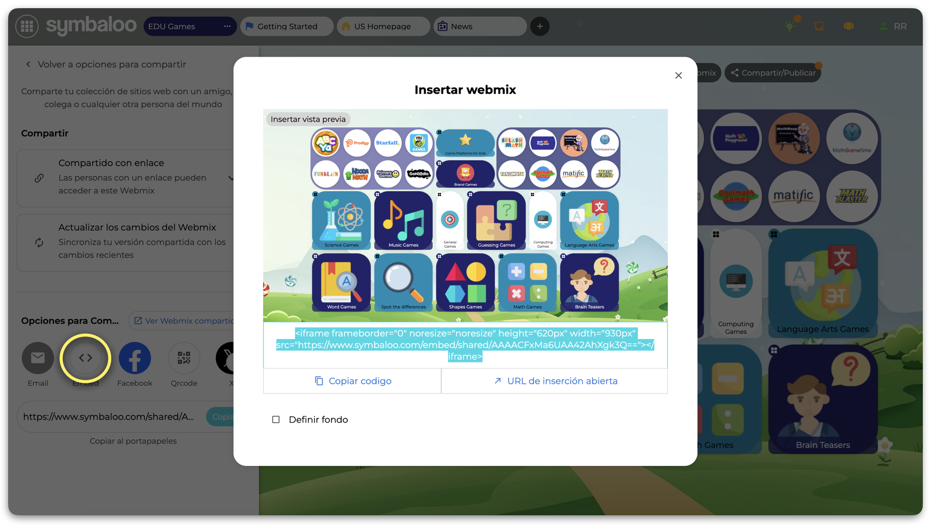 ¿Cómo compartir un Webmix en Symbaloo? Una vez que hayas creado un Webmix, puedes compartirlo fácilmente con estudiantes, colegas o cualquier otra persona. Symbaloo te ofrece varias formas de hacerlo: Opciones para compartir Debes seleccionar el ...