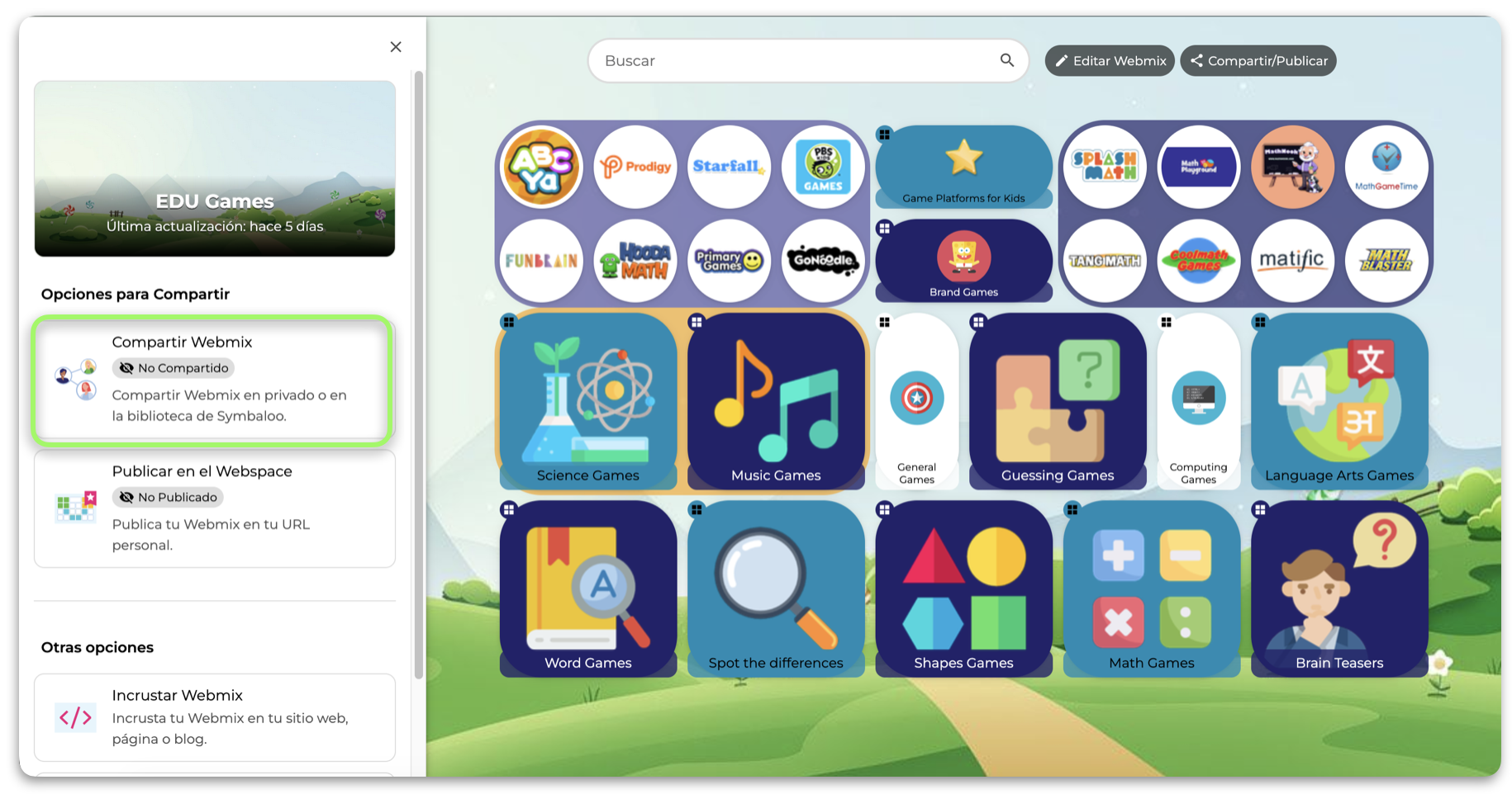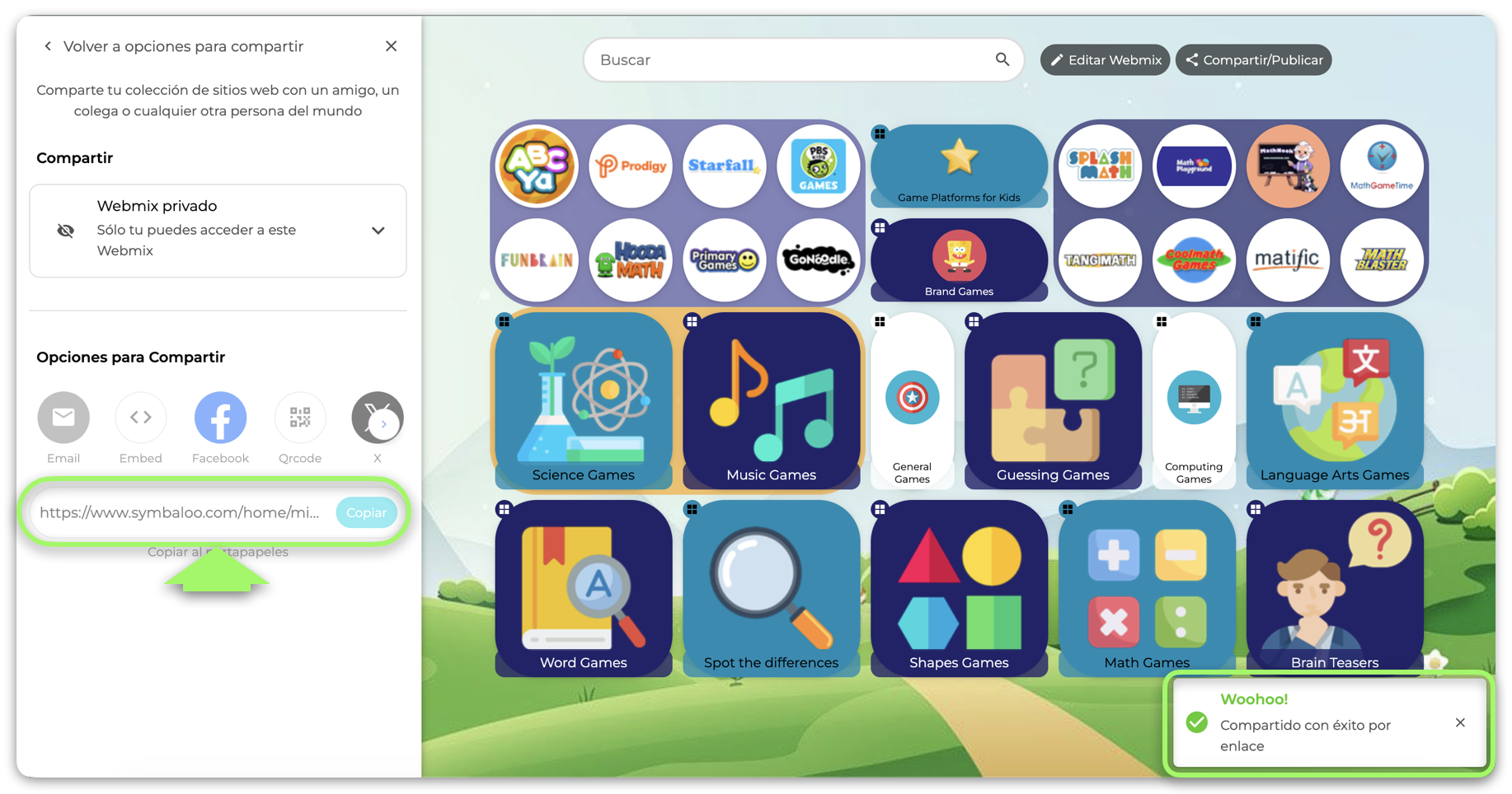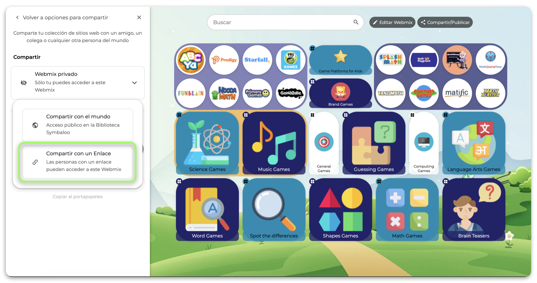 Una vez que hayas creado un Webmix, puedes compartirlo fácilmente con estudiantes, colegas o cualquier otra persona. Symbaloo te ofrece varias formas de hacerlo: