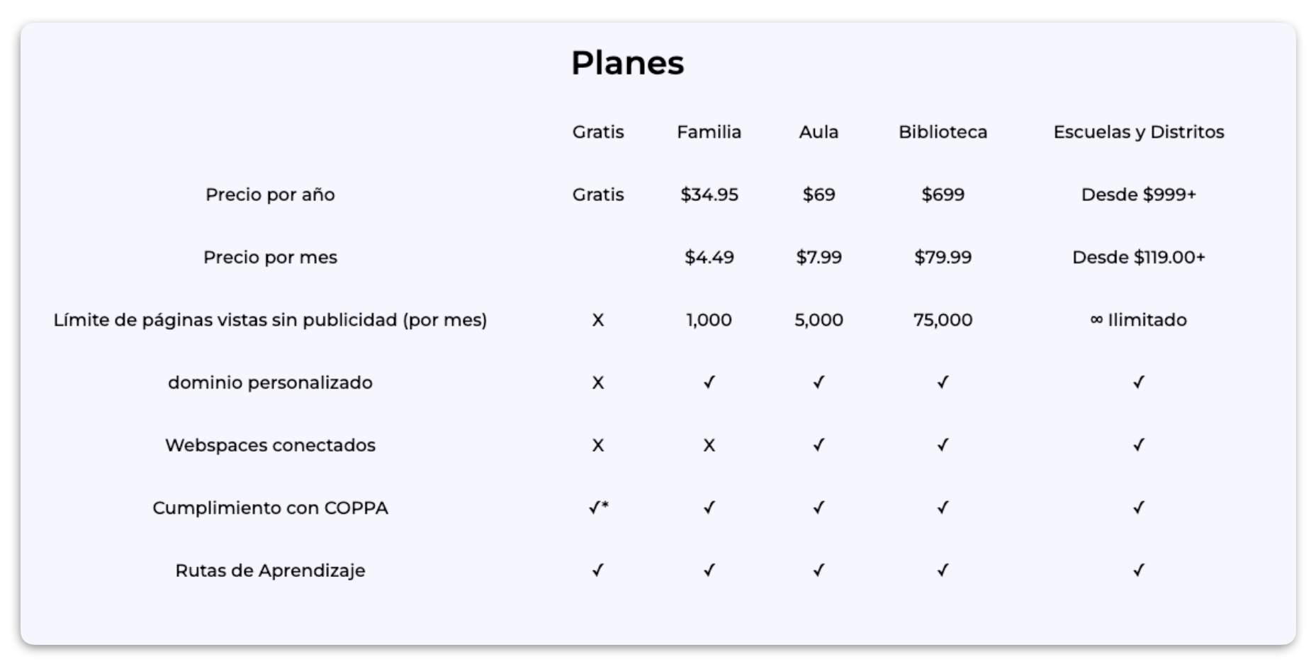 • Cuenta con Webspaces (recomendada para maestros, oficinas, escuelas y negocios): permite compartir tus Webmixes fácilmente mediante un enlace personalizado.