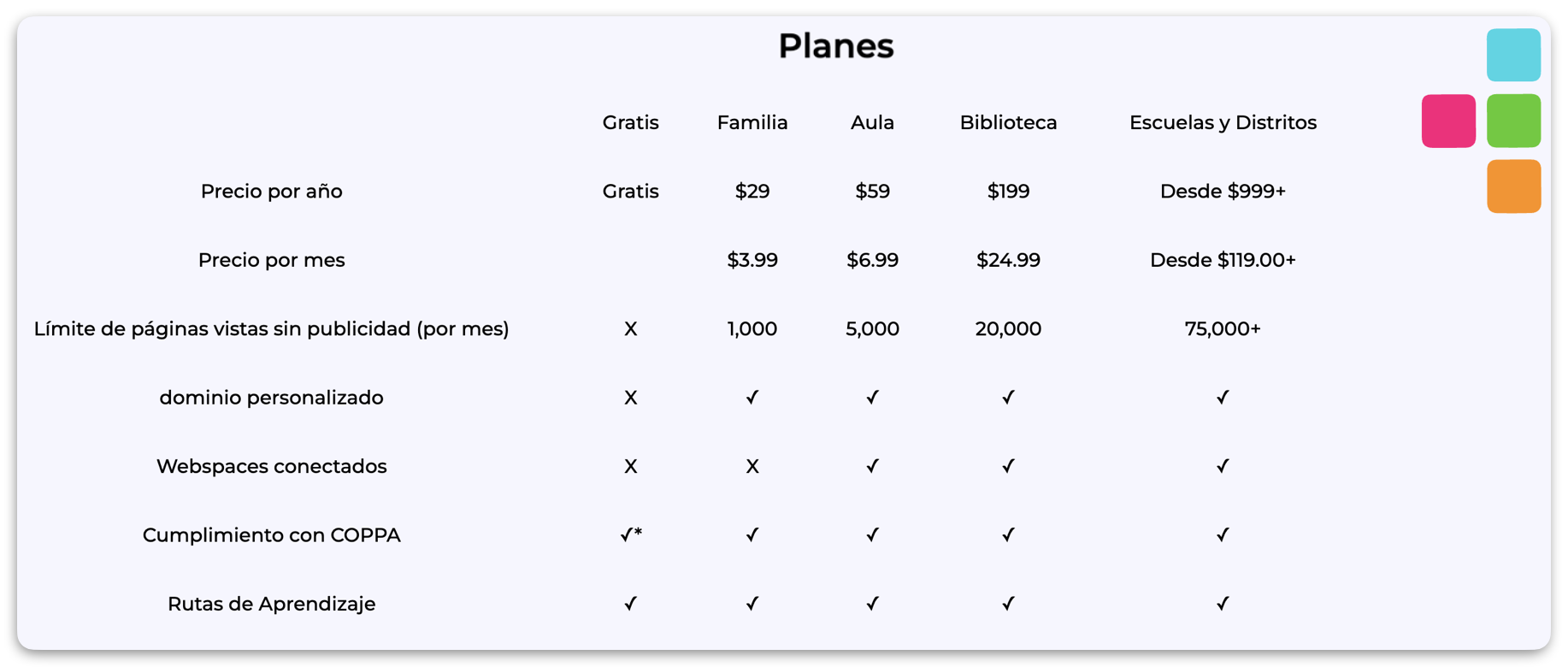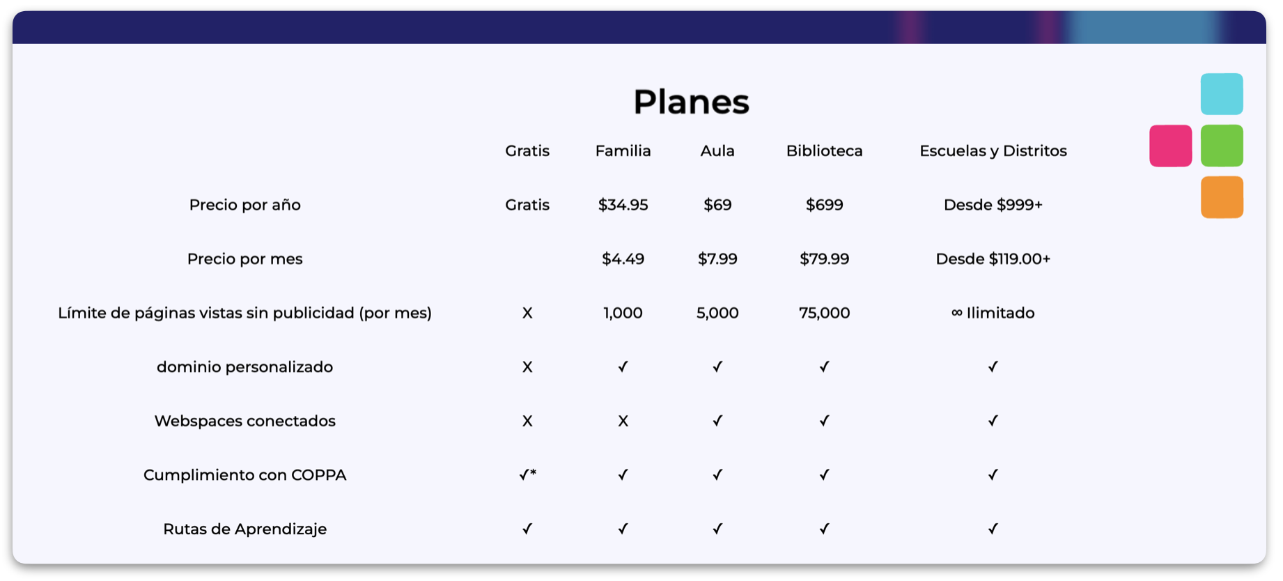 Puedes actualizar tu cuenta en cualquier momento para acceder a los Webspaces de Symbaloo con suscripción, eliminar anuncios y desbloquear funciones adicionales según el tipo de Webspace.
