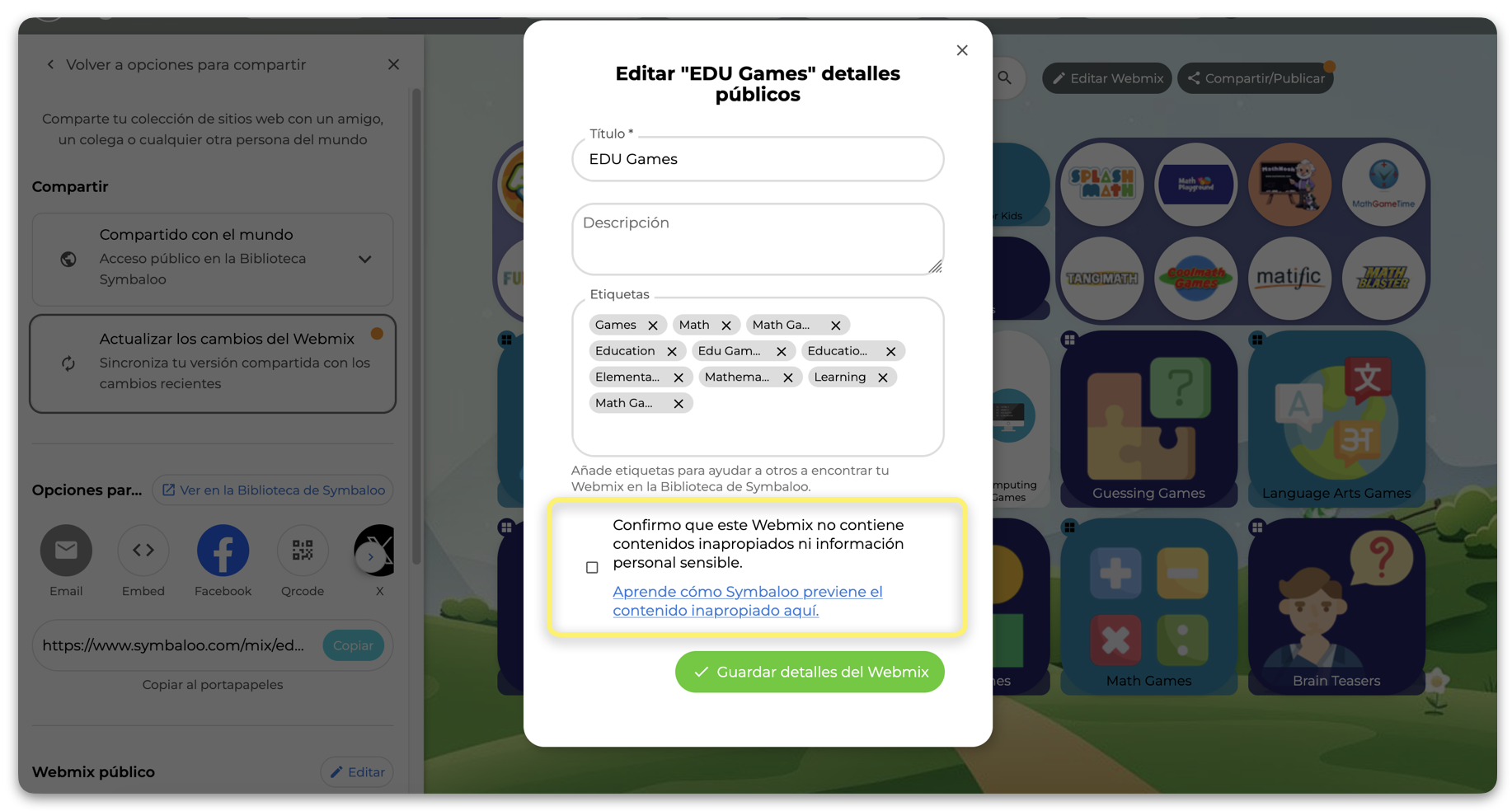 "Confirmo que este Webmix no incluye contenido inapropiado ni datos personales sensibles."