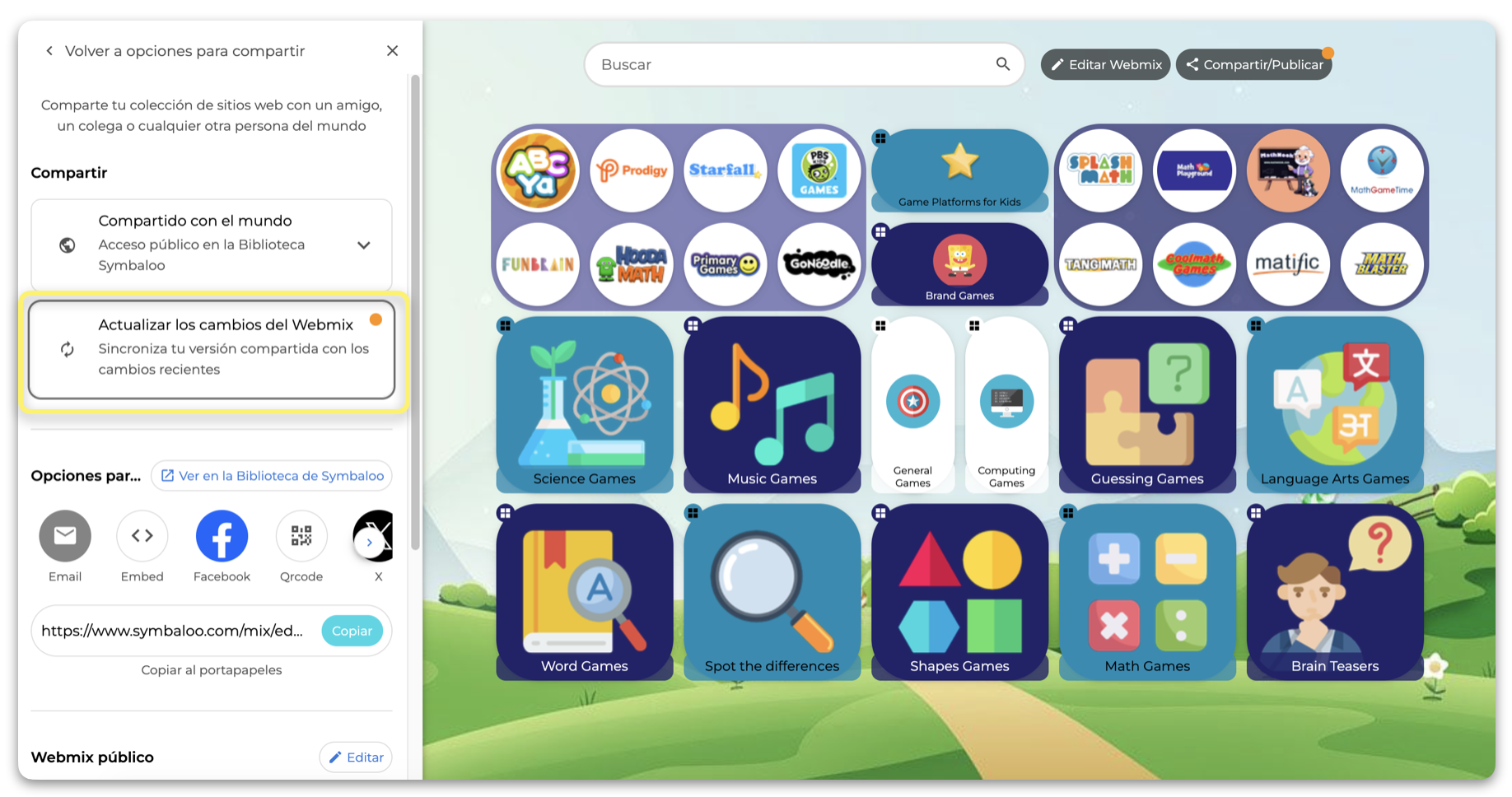 Como en este ejemplo estamos refiriéndonos a los Webmixes que han sido compartidos en la biblioteca de Symbaloo; deberás seleccionar el botón que dice "Compartir Webmix"