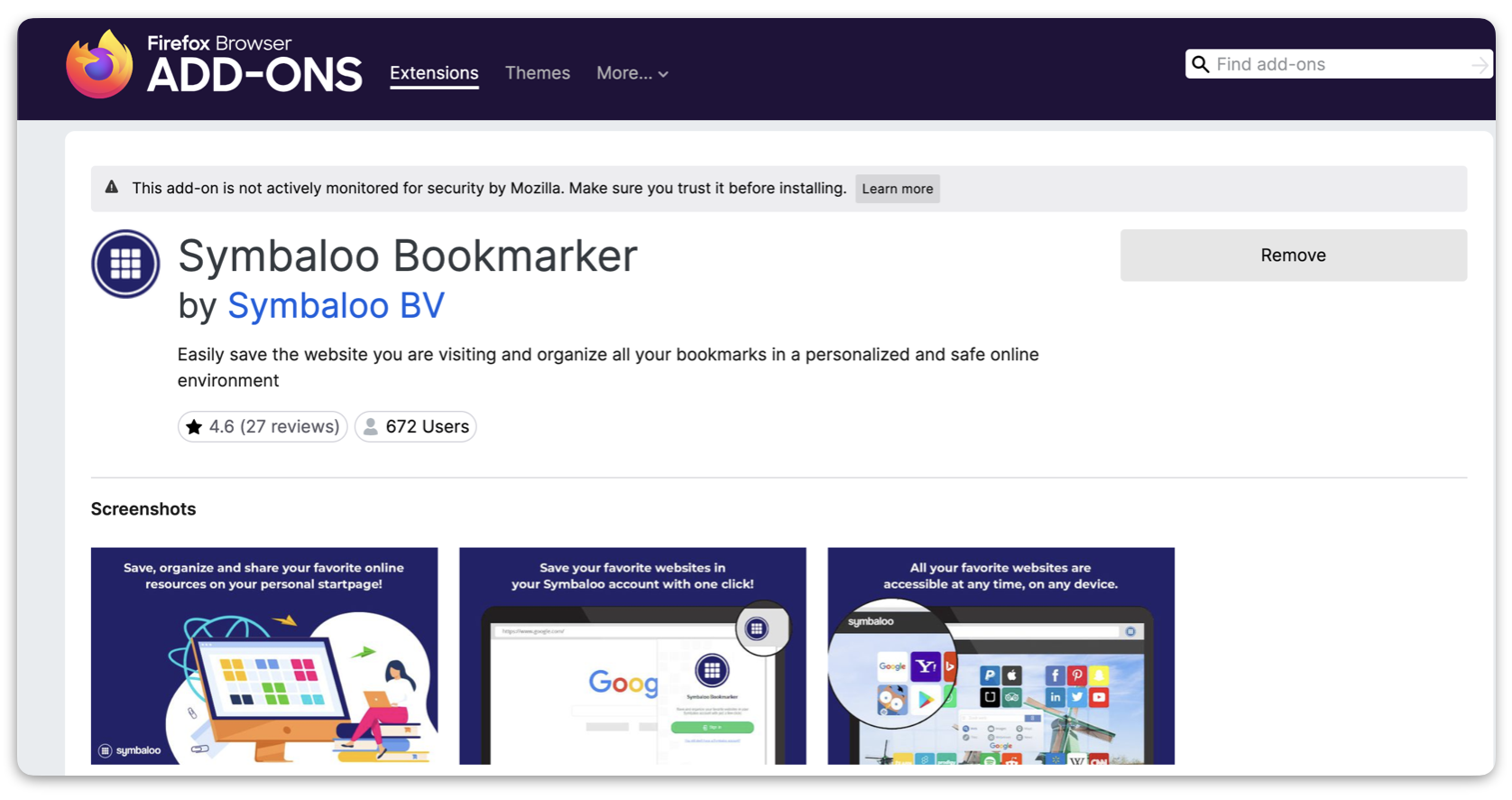 El Marcapáginas de Symbaloo es una extensión del navegador que puedes instalar en Google Chrome y Mozilla Firefox.
